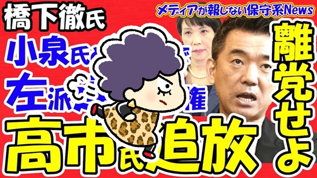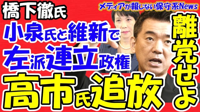 話は戻りますが、高市さんと橋下くんとのやり取りの詳細を、「hirokumaちゃんねる」さんがうまくまとめてくれてはりました(【橋下徹氏】小泉進次郎首相と維新で左派連立政権誕生のため高市早苗を追放!!保守系議員を連れて離党せよ!!マッチョな発言は勇気と覚悟がないと意図的に扇動!!過去に「中国に頭を下げるべき」で対立!!)。