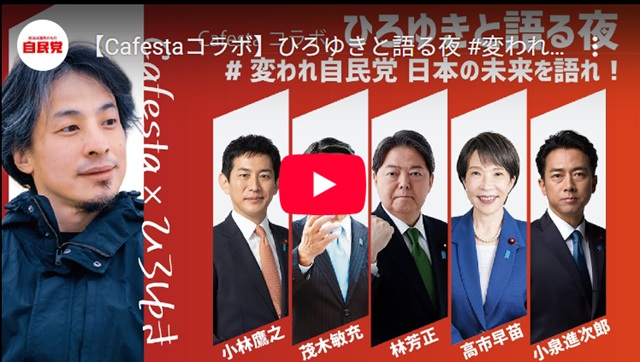 そしてもう一つ、ネット番組でも総裁選討論会をやっています「ひろゆきと語る夜 #変われ自民党 日本の未来を語れ!自民党総裁選」。何と、キャスター役の「ひろゆき」さんの質問に対する答えがこれです。