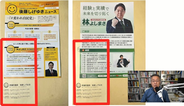 マスゴミはそんなことは報じませんから、問題にはなりませんね。あ、ちょうど今、「山口敬之チャンネル」をやっています。何と林芳正陣営の幹部の後藤茂之(しげゆき)が、国政レポートに、バリバリの林芳正応援を印刷して大量に配布しています、と。