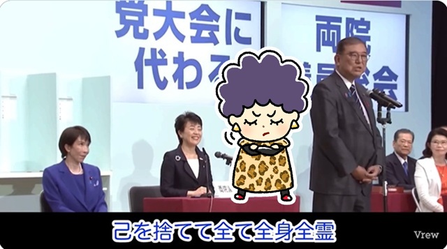 その後の石破氏の受けのスピーチは、私は聞いてなかったのですが、ネットではさっさと拡散されてますね(ドンマイおじさん)。