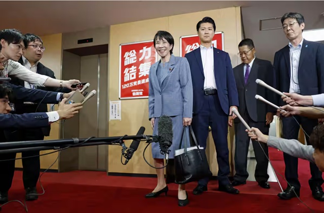 自民党の高市早苗総裁は5日、党本部を出る際、待ち受ける記者団に「皆さんの方はワークライフバランスを大事にしてください」と語りかけた。「私は今、一生懸命働いていますが、日曜日ですよ」とも語った。