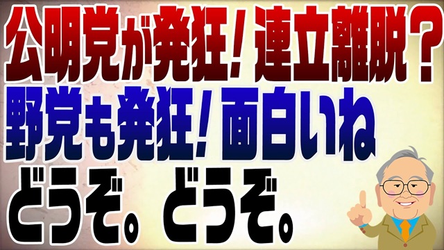 あーこれで公明党は、次はズタズタになりますね。アホですね。ま、シナの手先はさっさと無くなってくれたらええわ。ちなみにアホマスゴミは、公明党は「政治とカネ」の問題を重視してる、なので萩生田くんの「幹事長代行」を辞めさせたいようだ、との報道です。どうでもええけど。