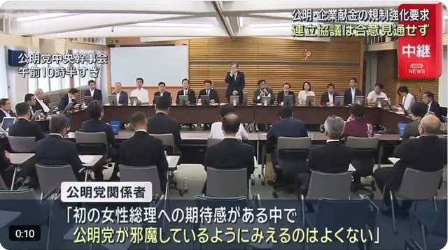 もう毎日状況がコロコロ変わるので、ホンマに付いて行くだけで精一杯ですね。あ、いきなり言い訳っぽくてすみません。ネットで今日、一番キモかったのがこれですね(「初の女性総理への期待感がある中で公明党が邪魔しているようにみえるのはよくない」)。