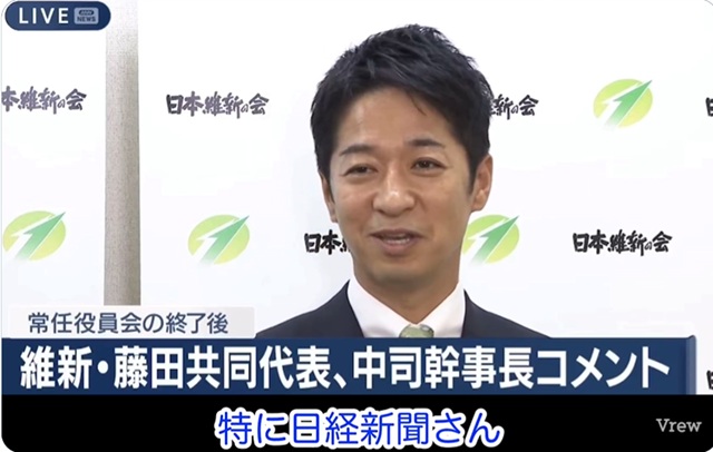 ハッキリ言って、時事通信の大間違いの記事です。維新幹部って誰?相手の名誉のためにも言いますが、ここの部分の記載は「全部」間違いです。