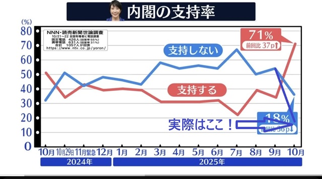 昨日就任式を挙げた高市内閣の特集で、意図的に受け手に不安感や否定的イメ―ジを与える手口で高市早苗総理と高市内閣を攻撃した。映像を水平でなく角度をつけて訴求するのもプロパガンダ手法の一つだ。
