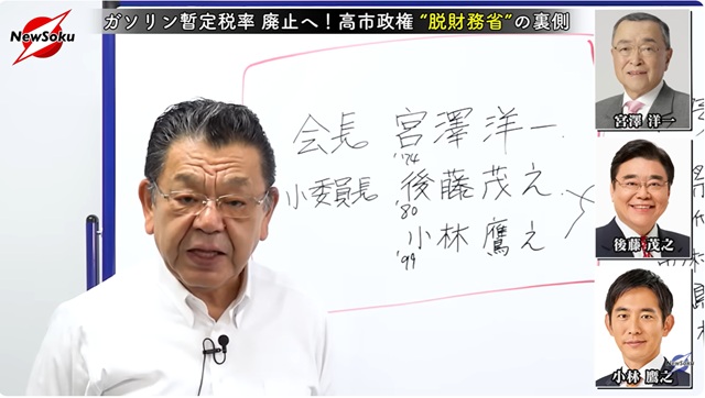 これは実は、政調会長にコバホークが抜擢された時に、宮沢洋一くんは観念したんやろうと、私は勝手に思っています。めっちゃわかりやすいのがこれです(高市政権から財務省派閥が一掃!ガソリン暫定税率 年内廃止の裏側)。