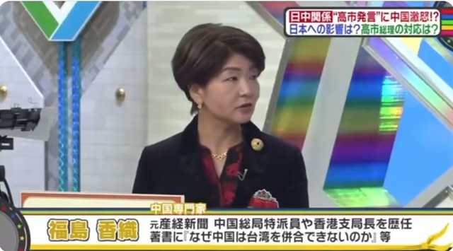 福島香織さん…高市総理の台湾有事・存立危機事態発言について…