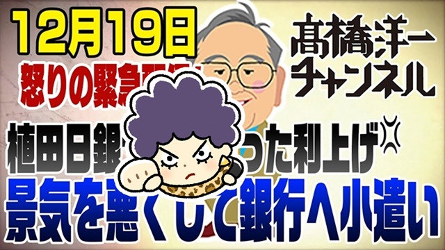 高橋洋一さんは、タイトル通り、「怒り」を持って話してはりました。そして三橋貴明さんも(【速報】日銀が利上げを決定!何が起きるのか解説します)。高市内閣が、国を挙げて景気を良くしようとしているのに、お金を借りにくくする状況を作ることになるわけですね。こいつらもまた、「内なる敵」と言うてもええと思いますね。
