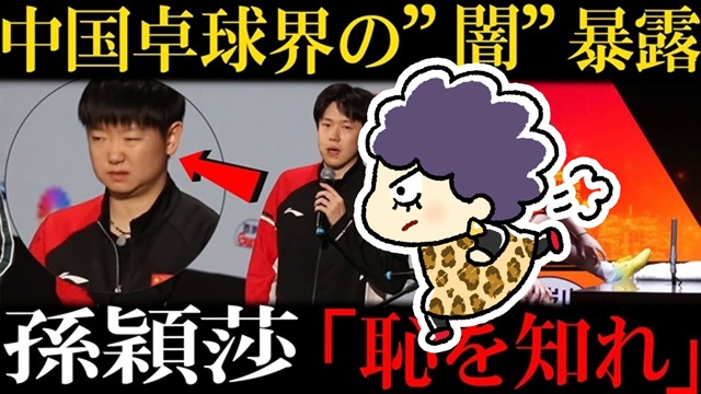 さらに香港の「中国」人観客は、いつも通り、張本選手には強烈なブーイングの嵐、とか。たまりかねて孫さんが、その前?後?のインタビューで、爆弾発言をしたという動画が流れています(孫穎莎「恥を知れ」緊急激白!優勝直後の”中国卓球界の腐敗・闇”暴露で世界戦慄!TABOOを破った衝撃の真相とは?)。さらに、引退するとか、日本卓球界に来る、とかの話も。