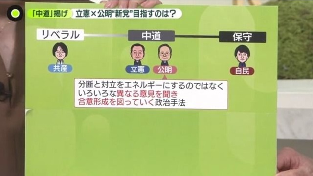 これ自体はホンマに失笑もんの話なんですが、オールドメディアは平気です。そして同じ日に日テレの「NEWS ZERO」でもこんな画像が、と(【独自分析】立憲×公明“新党”なら選挙の「勝敗」どう変わる? “新党”が目指す「中道」とは)。