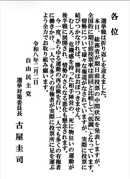 ただ、昨日?発表された「期日前投票」の数は、いつもに比べて「低調」やということです。「自民党大勝」は、基本的には投票率がものごっつい高い場合にあり得る、と言うことなので、これはやっぱりヤバい、ということで、自民党側はまた発破をかけているようです。