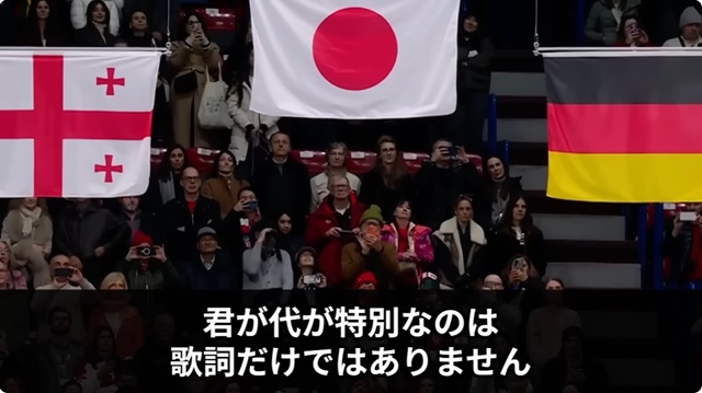 私が視たのはこの動画です(「こんなの国歌じゃない!」りくりゅうペア優勝時の日本国歌が異常すぎると世界が驚愕!歌詞の本当の意味を知った外国人が号泣した理由…【海外の反応】【ミラノ五輪】【ミラノオリンピック】)。「りくりゅう」ペアが金メダルを獲ったときの表彰式ですね。