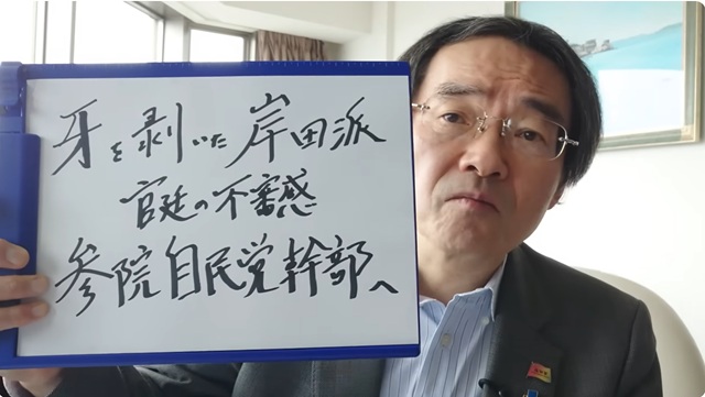 それは実は、参議院の自民党の中の、岸田派二人のサボタージュみたいなもんやそうです。参議院で汗をかくべき議員会長の松山政司と、国対委員長の磯崎仁彦は、ともに岸田派です、と。こいつら、次は落としましょう。門田さんははっきりと「岸田が牙を剝いた」と言うてはりますね。