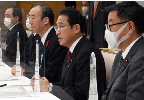 今後の皇室のあり方を検討してきた政府の有識者会議で発言する岸田文雄首相(右から2人目)。同3人目は清家篤座長=首相官邸で2021年12月22日午後5時43分、竹内幹撮影